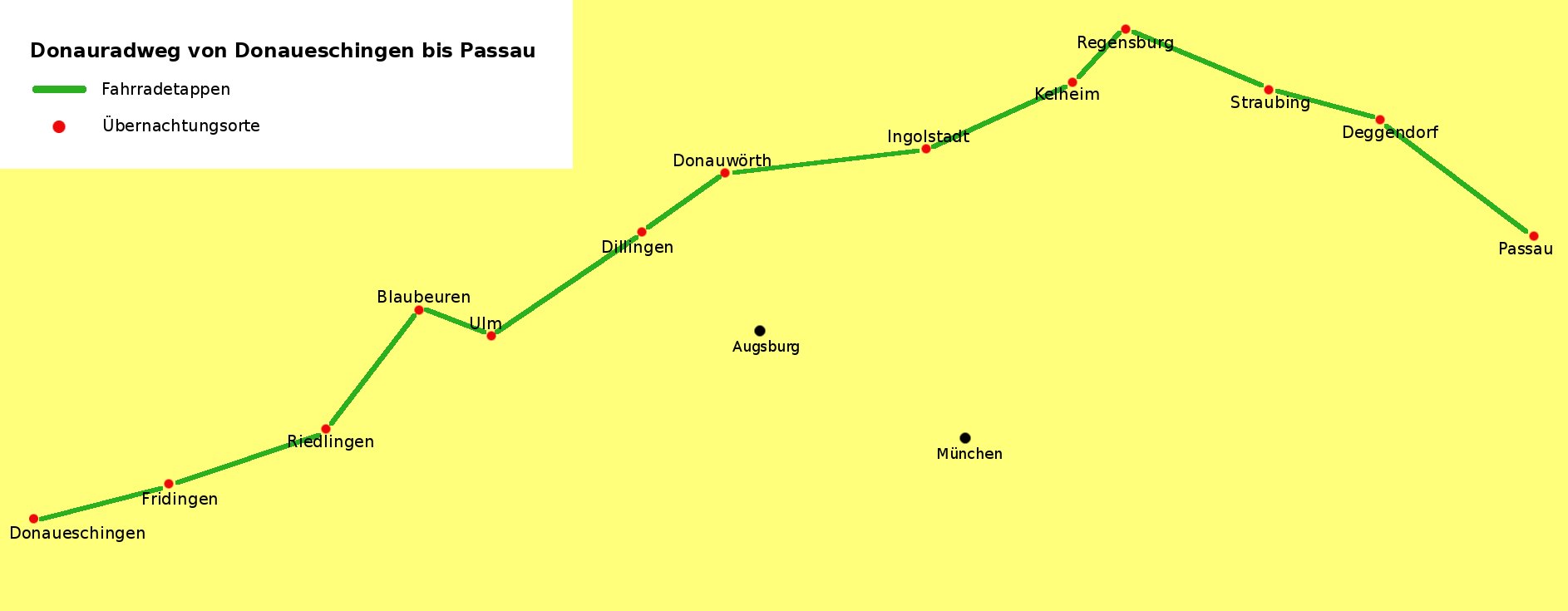 Insgesamt fuhren wir von Donaueschingen bis Passau rund 700 km, darin sind aber auch Stadt-