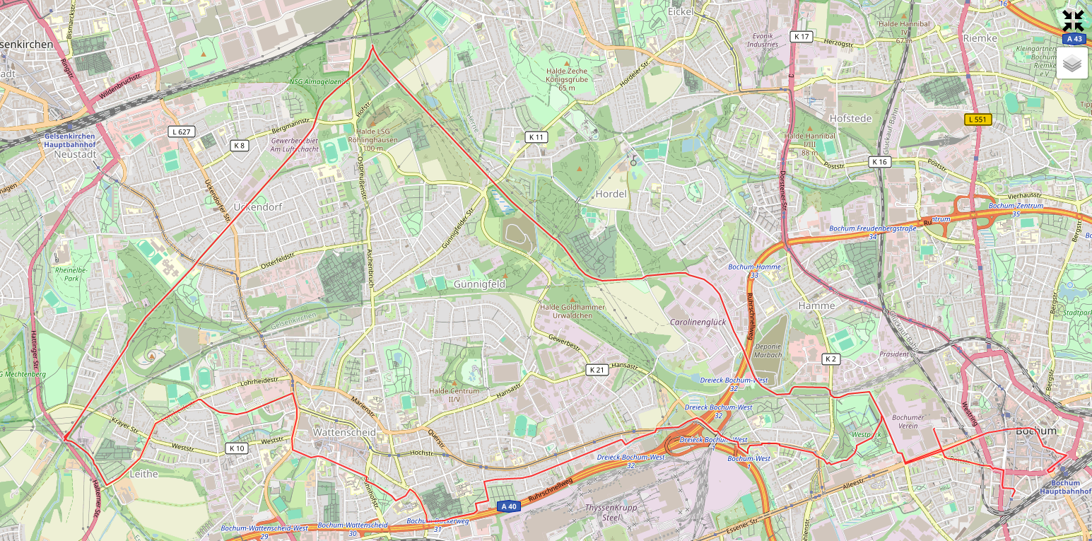 Wir wollten nun nach Bochum, das man übrigens von