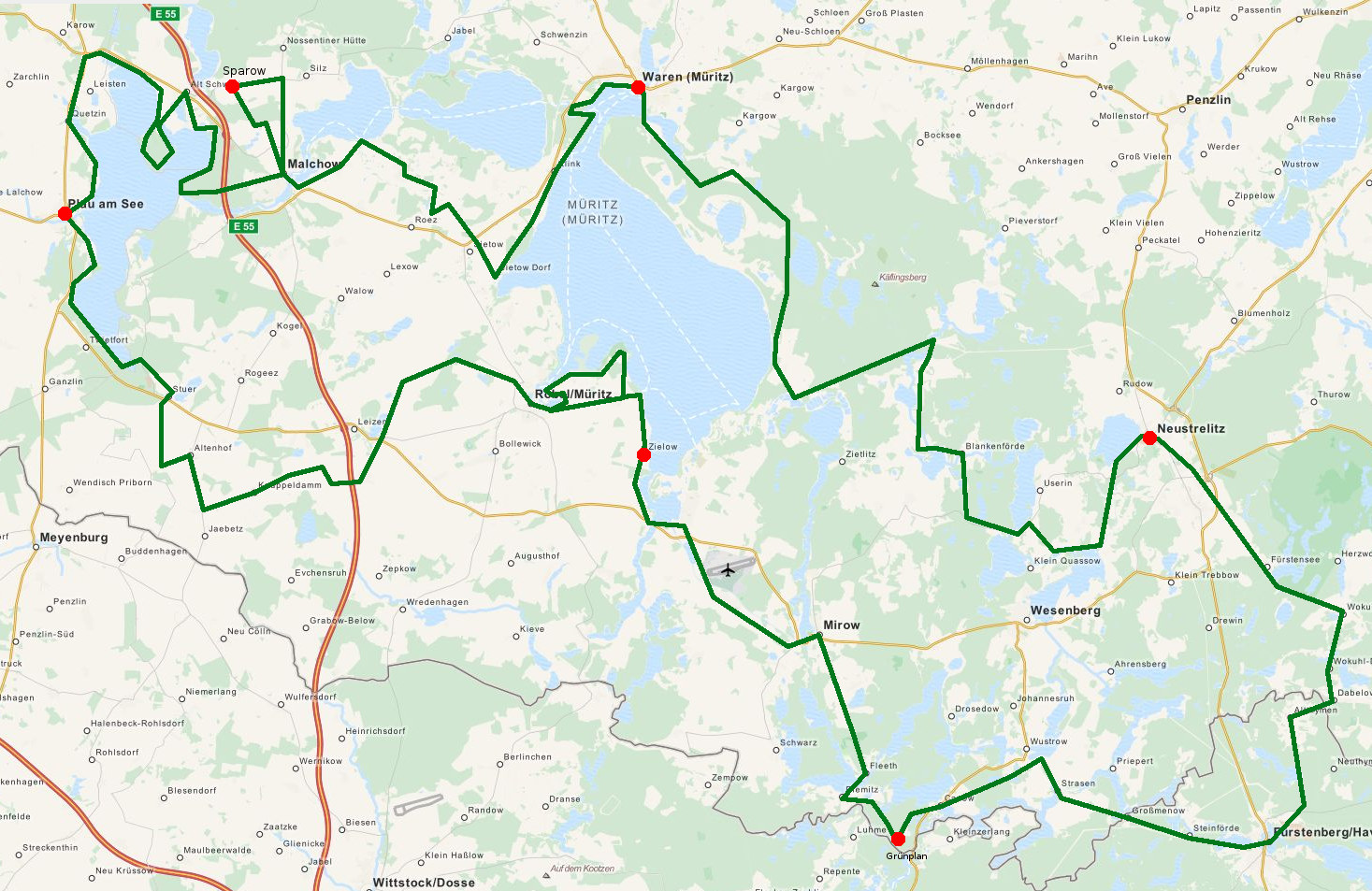 Von hier gings auf Landstraßen weiter über Meyenburg, Stuer und Sietow nach Waren.